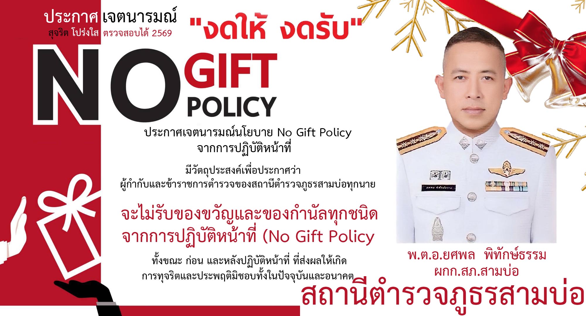 O14 ประกาศนโยบายต่อต้านการรับสินบน (Anti-Bribery Policy) และการมีส่วนร่วมของหัวหน้าสถานีตำรวจ