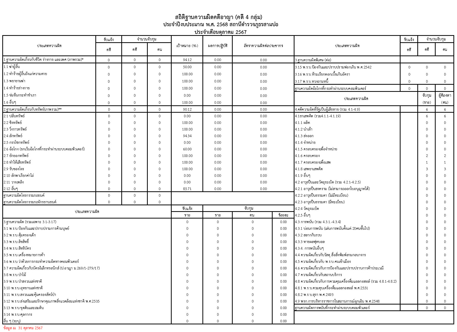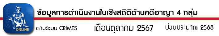 สถิติด้านคดีอาญา 4 กลุ่ม ตามระบบ CRIMES ประจำเดือน ตุลาคม 2567 1 พฤศจิกายน 2024 โดย admin / O11.สถิติผลการดำเนินงาน,สถิติด้านคดีอาญา