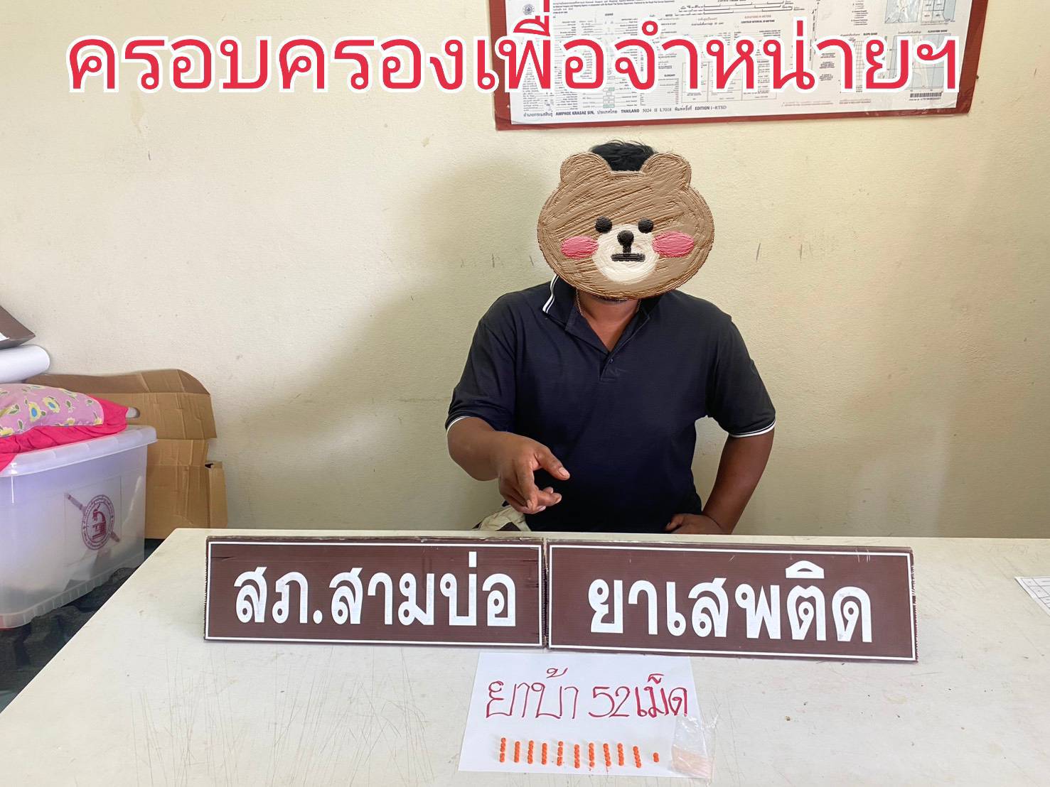 วันจันทร์ที่ 3 พฤศจิกายน 2568 เวลา 09.30 น. ร.ต.อ.สุนทร แช่มช้อย รอง สว.สส.สภ.สามบ่อ หน้าหน้าชุดสืบสวน สภ.สามบ่อ พร้อมด้วยเจ้าหน้าที่ชุดสืบสวนสภ.สามบ่อ ได้จับกุมบุคคลในฐานความผิด “เสพยาเสพติดให้โทษประเภท1(เมทแอมเฟตามีน)โดยฝ่าฝืนต่อกฎหมาย,เป็นผู้ขับขี่เสพยาเสพติดให้โทษโดยฝ่าฝืนต่อกฎหมายและขับขี่รถโดยไม่มีใบอนุญาตขับรถ”จากนั้นได้บันทึกการจับกุม ถ่ายภาพ ทำประวัติ เสร็จแล้วนำตัวผู้ถูกจับและเอกสารประกอบบันทึกการจับกุม ส่ง พงส.สภ. สามบ่อ ดำเนินการตามกฎหมายต่อไป