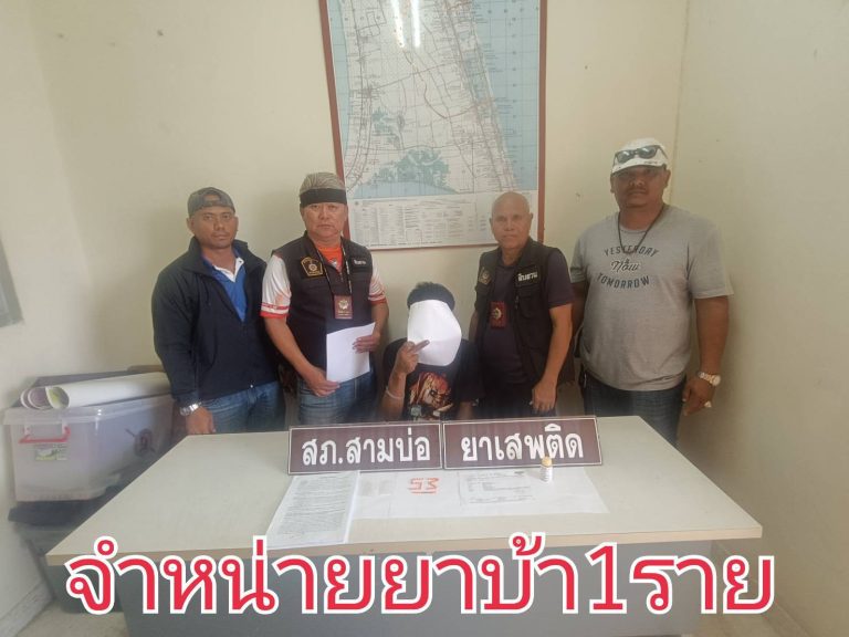 จับกุมผู้ต้องหา พ.ร.บ. ยาเสพติด 22 มกราคม 2026 โดย admin / ข่าวประชาสัมพันธ์,O7.ผลการปฏิบัติงานของแต่ล่ะสายงาน,ข่าวประชาสัมพันธ์,O7.ผลการปฏิบัติงานของแต่ล่ะสายงาน,งานสืบสวน,ข่าวประชาสัมพันธ์,O7.ผลการปฏิบัติงานของแต่ล่ะสายงาน,งานสืบสวน,งานสืบสวนเดือนมกราคม วันพฤหัสบดีที่ 22 มกราคม 2569 เวลา 09.40 น. ร.ต.อ.สุนทร แช่มช้อย รอง สว.สส.สภ.สามบ่อ หน้าที่ชุดสืบสวน สภ.สามบ่อ พร้อมด้วยเจ้าหน้าที่ชุดสืบสวนสภ.สามบ่อได้จับกุมบุคคลในฐานความผิด “จำหน่ายยาเสพติดให้โทษประเภท๑(ยาบ้า)โดยการมีไว้เพื่อจำหน่าย”จากนั้นได้นำตัว มาที่ สภ.สามบ่อ เพื่อจัดทำบันทึกการจับกุม ดำเนินการตามกฎหมายต่อไป
