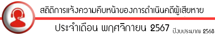 สถิติการการแจ้งความคืบหน้าของการดำเนินคดีผู้เสียหาย ประจำเดือนพฤศจิกายน 2567 1 ธันวาคม 2024 โดย admin / O11.สถิติผลการดำเนินงาน,การดำเนินคดีผู้เสียหาย