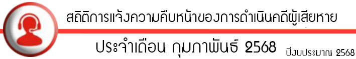 สถิติการการแจ้งความคืบหน้าของการดำเนินคดีผู้เสียหาย ประจำเดือนกุมภาพันธ์ 2568 1 มีนาคม 2025 โดย admin / O11.สถิติผลการดำเนินงาน,การดำเนินคดีผู้เสียหาย