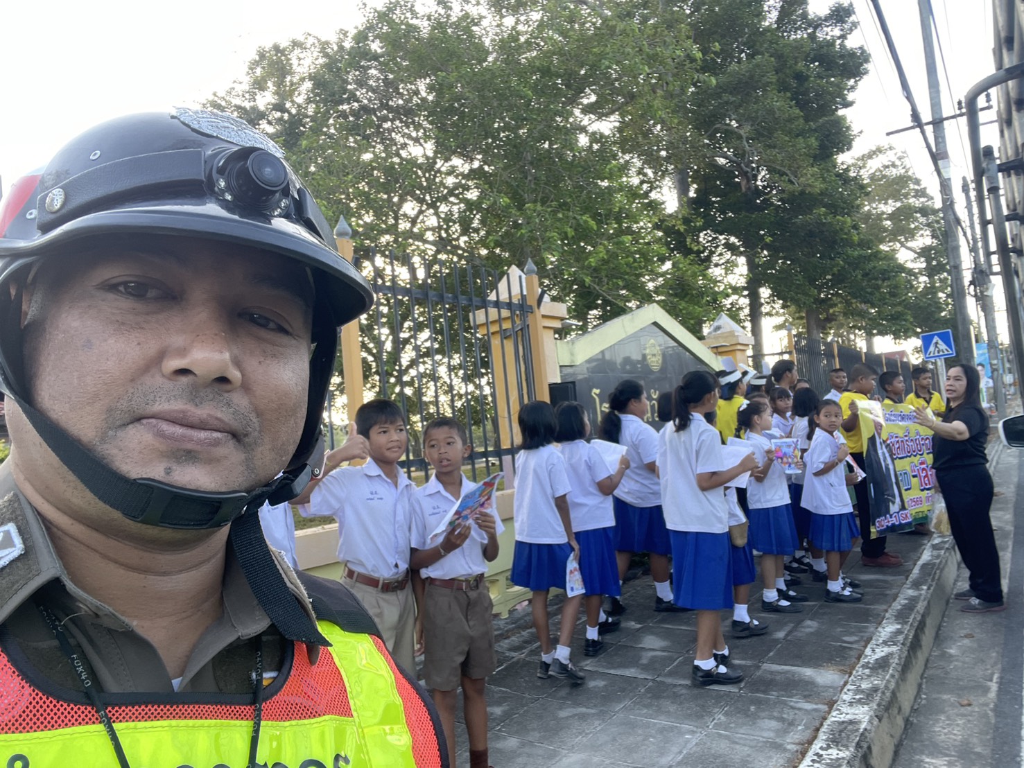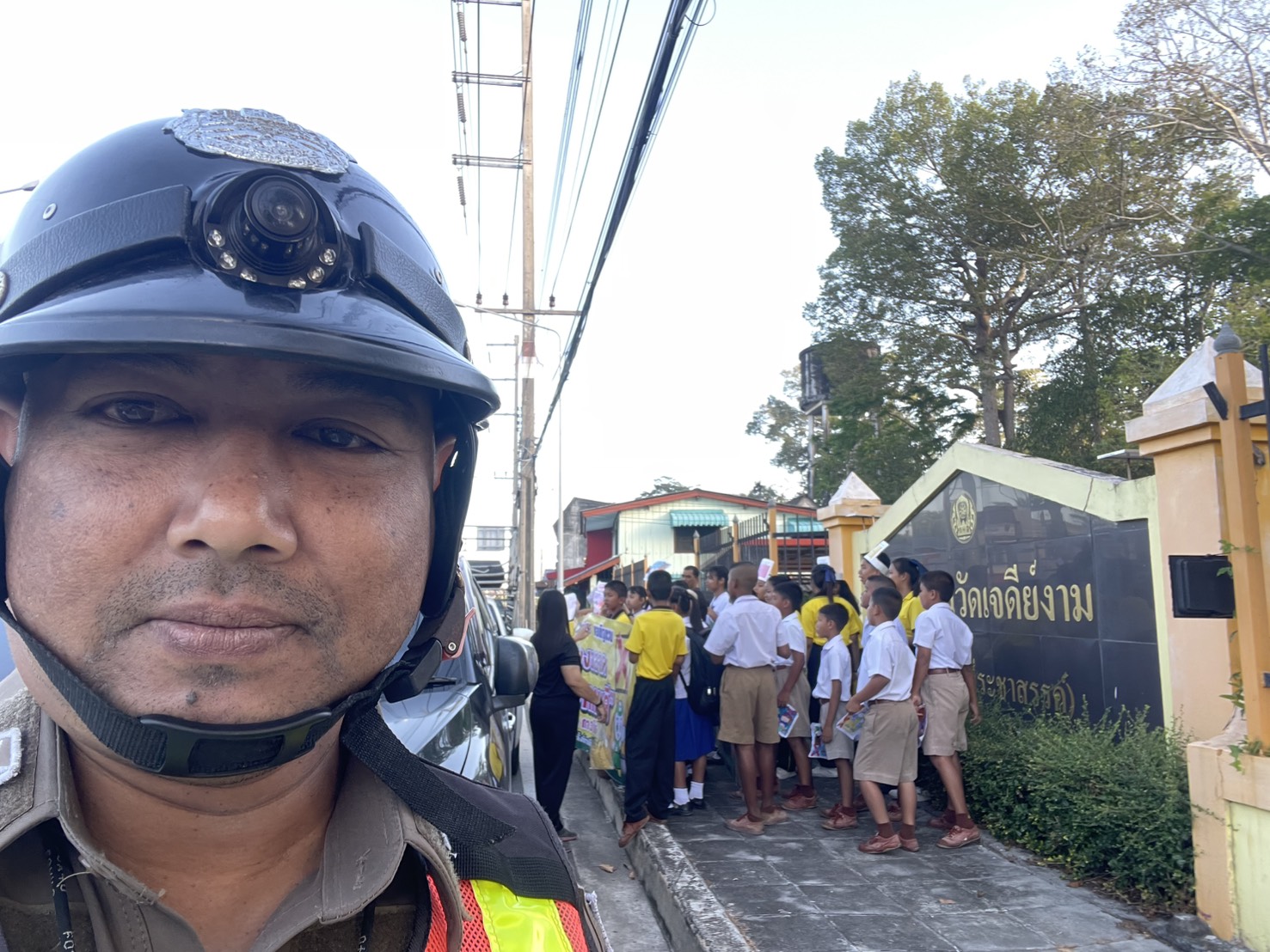 อำนวยความสะดวกหน้าโรงเรียน 6 กุมภาพันธ์ 2026 โดย admin / ข่าวประชาสัมพันธ์,O7.ผลการปฏิบัติงานของแต่ล่ะสายงาน,ข่าวประชาสัมพันธ์,O7.ผลการปฏิบัติงานของแต่ล่ะสายงาน,งานจราจร,ข่าวประชาสัมพันธ์,O7.ผลการปฏิบัติงานของแต่ล่ะสายงาน,งานจราจร,งานจราจรเดือนกุมภาพันธ์ วันศุกร์ที่ 6 กุมภาพันธ์ 2569 เวลา 07.00น. ด.ต.สุริยา ไทยรัตน์ ผบ.หมู่(จร.)สภ.สามบ่อ อำนวยความสะดวกด้านการจราจรในเวลาเร่งด่วนแก่นักเรียน ผู้ปกครอง ครู หน้าโรงเรียนวัดเจดีย์งาม(เจริญศักดิ์ประชาสรรค์)เทศบาลตำบลบ่อตรุ