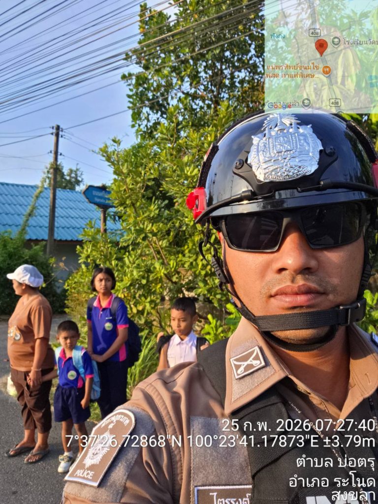 อำนวยความสะดวกหน้าโรงเรียน 25 กุมภาพันธ์ 2026 โดย admin / ข่าวประชาสัมพันธ์,O7.ผลการปฏิบัติงานของแต่ล่ะสายงาน,ข่าวประชาสัมพันธ์,O7.ผลการปฏิบัติงานของแต่ล่ะสายงาน,งานจราจร,ข่าวประชาสัมพันธ์,O7.ผลการปฏิบัติงานของแต่ล่ะสายงาน,งานจราจร,งานจราจรเดือนกุมภาพันธ์ วันพุธที่ 25 กุมภาพันธ์ 2569 ด.ต.ไตรรงค์ จันทร์แก้ว ผบ.หมู่(จร.)สภ.สามบ่อฯ ว.4 อำนวยความสะดวกด้านการจราจร ให้แก่เด็กนักเรียน ครู ผู้ปกครอง รร.วัดประดู่ ต.บ่อตรุ อ.ระโนด จว.สงขลา