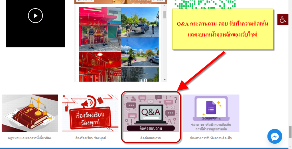 2.ช่องทางการถาม-ตอบ/รับฟังความคิดเห็น แสดงตำแหน่งบนเว็บไซต์ของหน่วยงาน