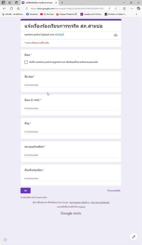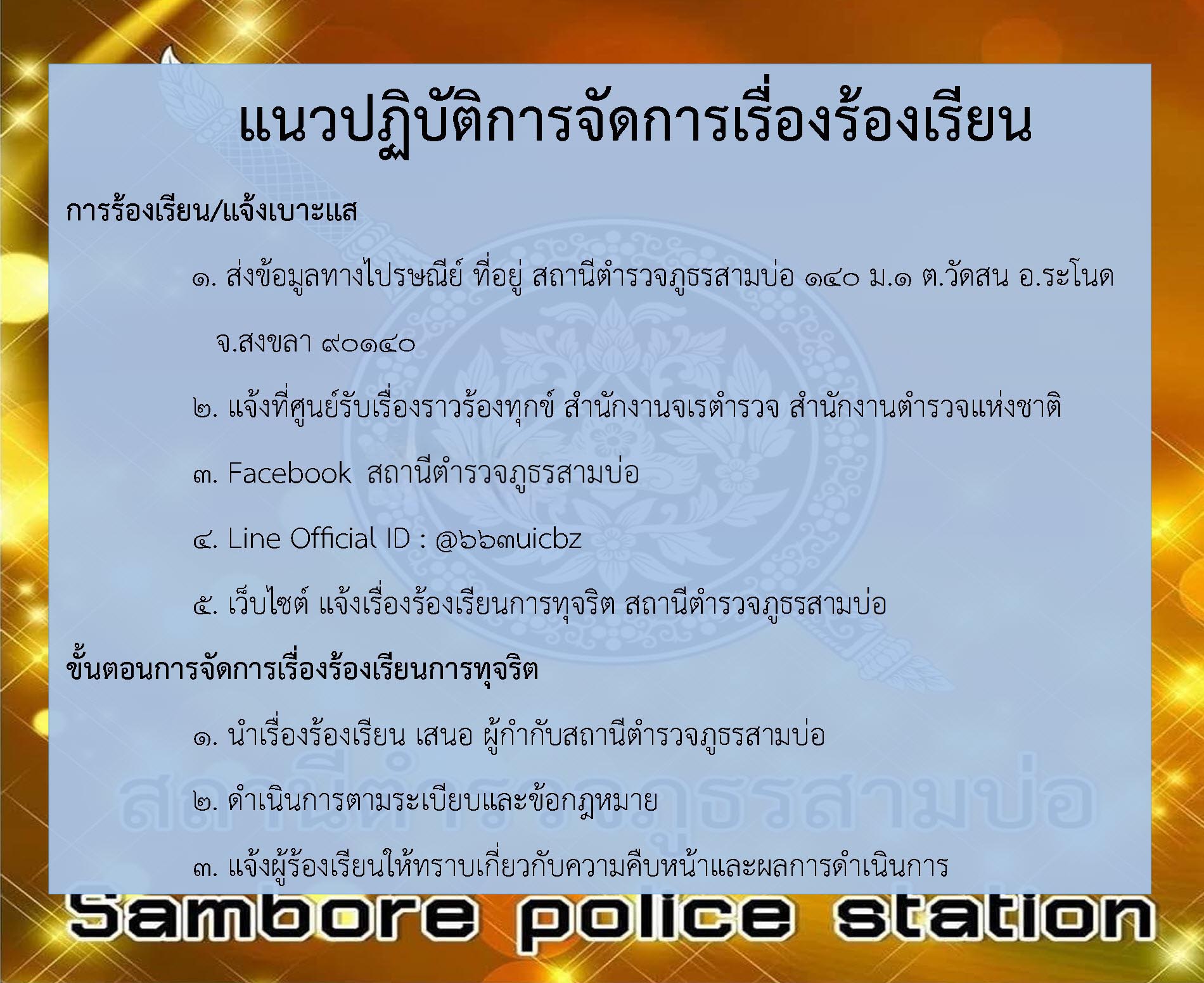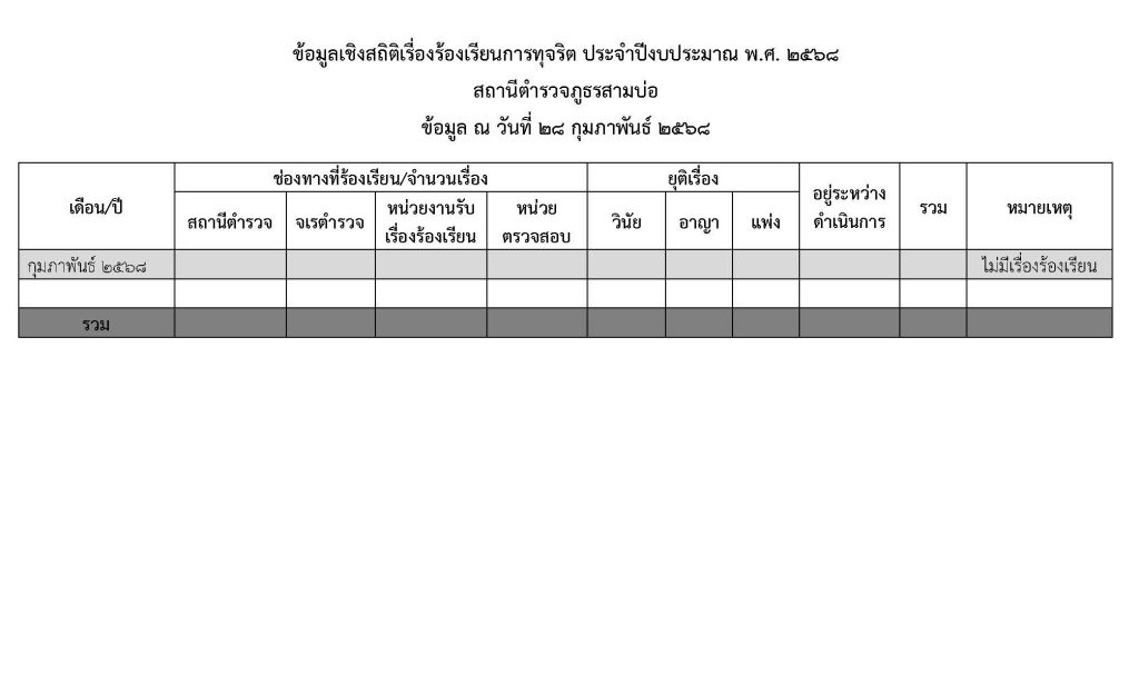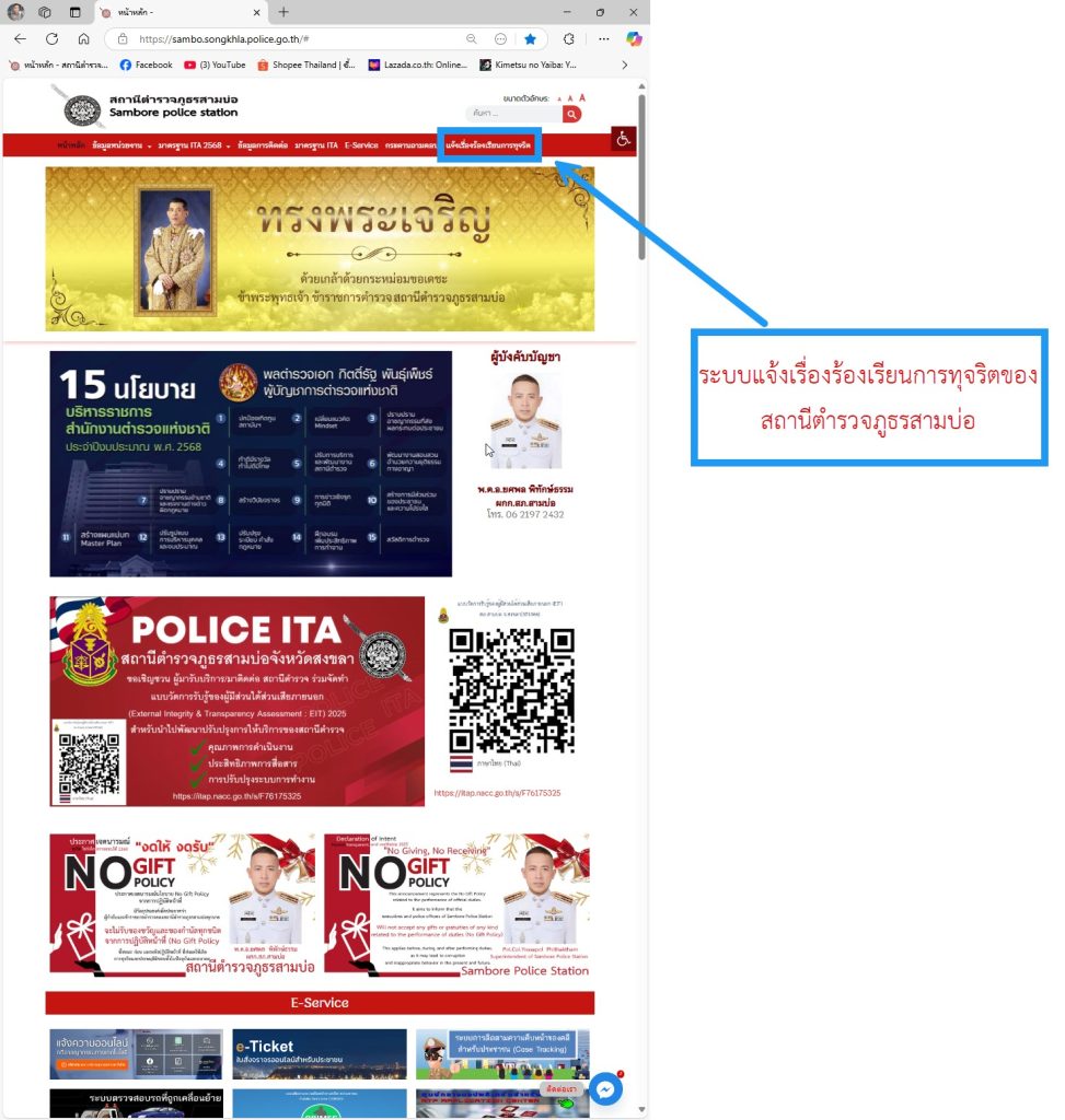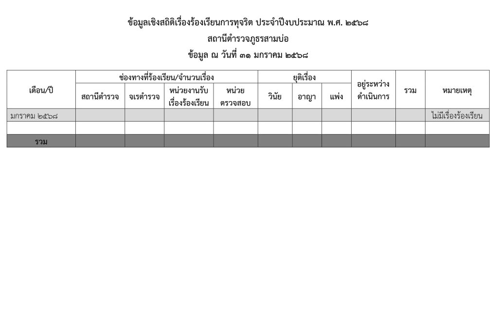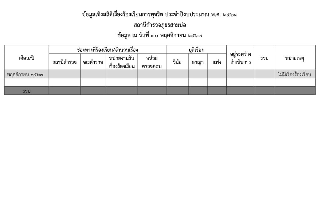 ระบบแจ้งเรื่องร้องเรียนการทุจริตของสถานีตำรวจภูธรสามบ่อ